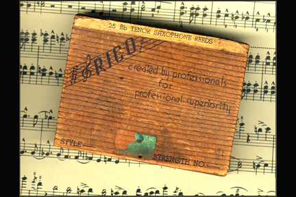 Description: Rico Saxophone Reed box ca 1950 - with music