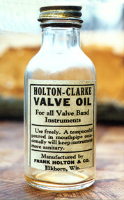 Description: Holton-Clarke valve oil bottle. Photograph taken by Mark S. Chalabala All Rights Reserved 2005.